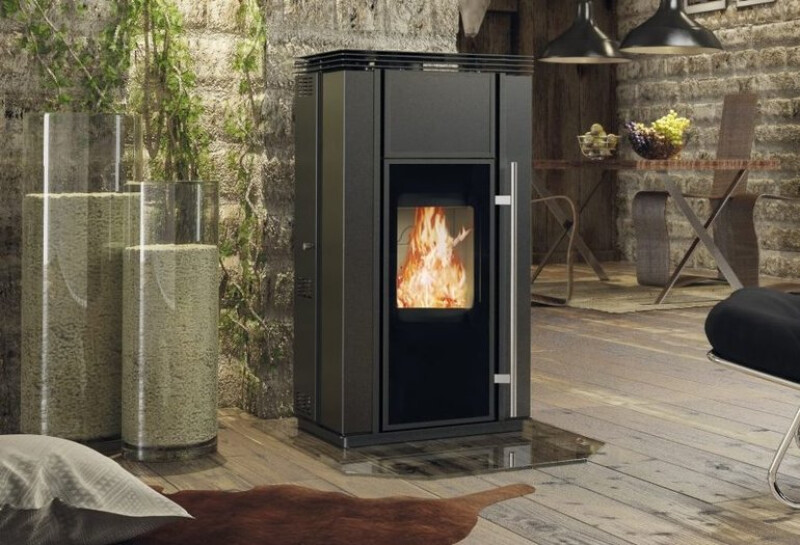 De hier getoonde Symio is bekleed met zijdeachtige witte tegels, die de kachel positief ondersteunen op het gebied van efficiëntie als warmteopslagsysteem. Het kijkpaneel, dat groot is voor een pelletkachel, maakt een onbeperkt zicht mogelijk op wat er in de verbrandingskamer gebeurt en dus een prachtig zicht op het vlammenspel. Een grote deurklink verlengt de lengte van de deur van de vuurhaard en voegt een functioneel chromen detail toe.