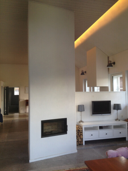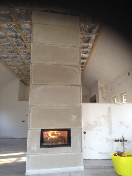 Ortner Accumulatie maatwerk met grundoven (voor perfecte verbranding en warmte opslag) en ceramische KMS rookkanaalsysteem (voor warmteopslag uit de rookgassen) met ceramische Ortner ombouwmaterialen (voor gelijkmatige warmte overdracht, wat in allerlei vormen kan) en afwerking met ortner mortel, pleisters en verf voor de visuele afwerking. Het geheel wordt zodanig gebouwd dat het een optimale verbranding en warmteopslag en warmteoverdracht heeft. Het is een mooi project geworden.